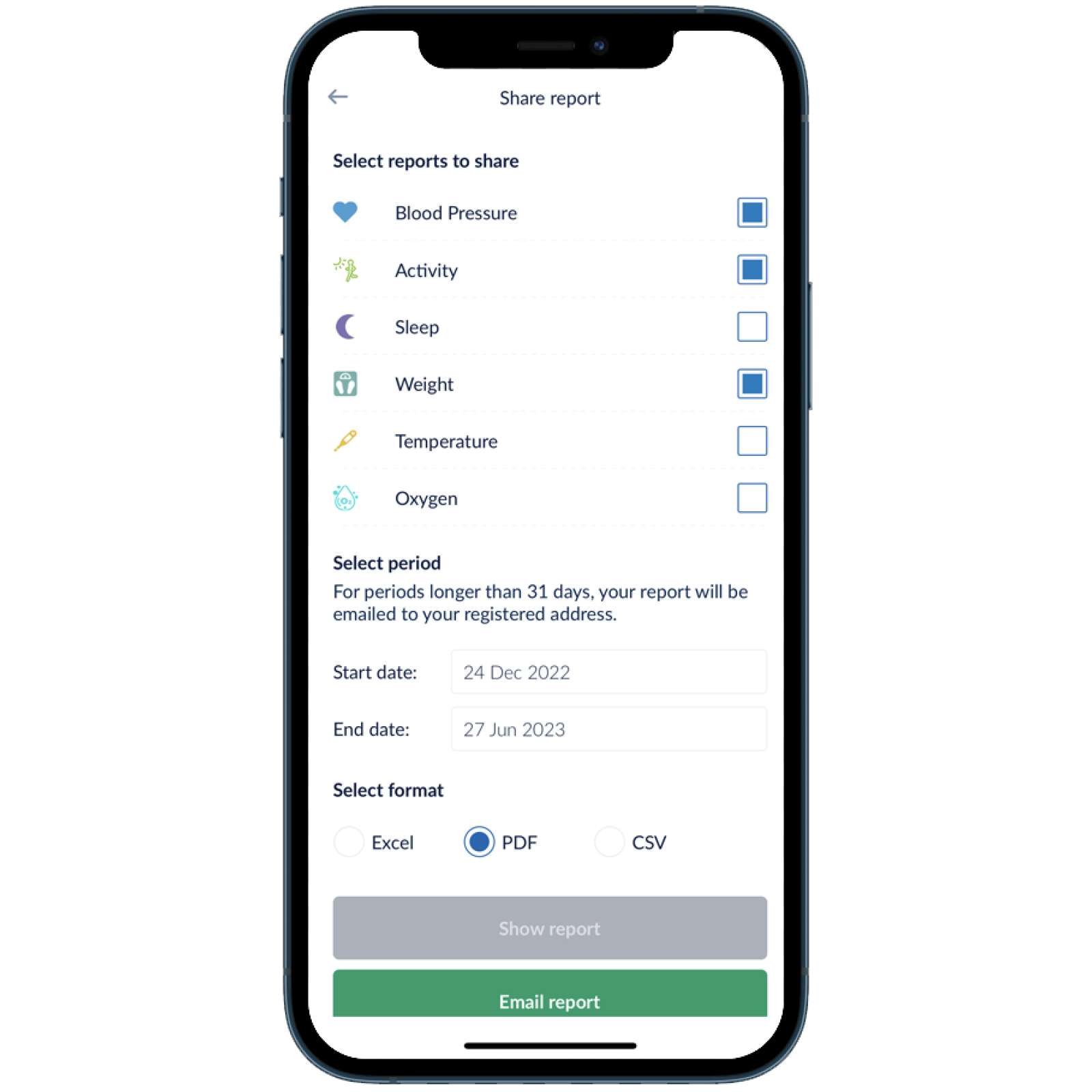 Aplikacja „OMRON connect” pomaga wszystko zrozumieć. Możesz śledzić trendy, monitorować swoje postępy i z łatwością udostępniać swoje dane dotyczące zdrowia lub eksportować wyniki pomiarów do innych aplikacji.