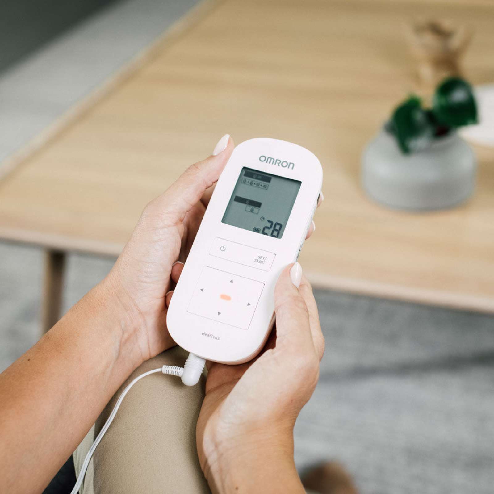OMRON HeatTens to urządzenie przeciwbólowe przeznaczone do zmniejszania i łagodzenia bólu mięśni i stawów, sztywności i drętwienia pleców, rąk, nóg, ramion i stóp poprzez zastosowanie elektrycznej stymulacji nerwów na powierzchni skóry w pobliżu miejsca bólu. HeatTens oferuje zarówno kojące ciepło, jak i łagodzi ból za pomocą technologii TENS.