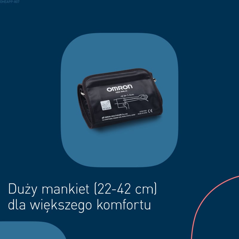 OMRON M2+ Connect sprawia, że domowe monitorowanie ciśnienia krwi jest proste i niezawodne. Dzięki technologii Intellisense zapewniającej wygodne i dokładne pompowanie oraz szerokiemu mankietowi o obwodzie 22–42 cm zapewnia wiarygodne wyniki. Łączność Bluetooth automatycznie synchronizuje odczyty z aplikacją OMRON Connect, a wykrywanie nieregularnego bicia serca i ruchu wspiera spójne monitorowanie.